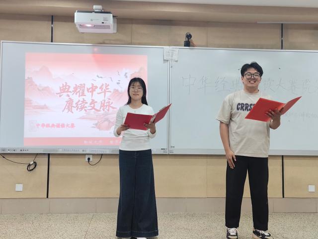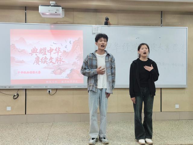 为弘扬中华优秀传统文化,进一步激发学生对中华经典的热爱,4月20日,数学科学学院于11号教学楼A304教室开展“典耀中华,赓续文脉”中华经典诵读活动,2023、2024级部分同学参加。