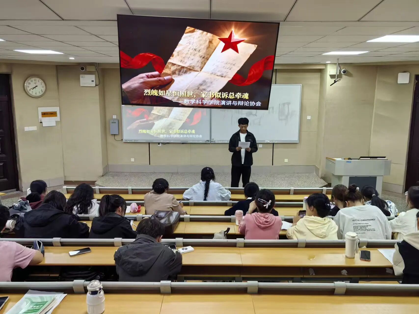 为引导青年学子缅怀革命先烈,传承红色基因,9月28日,数学科学学院于11号教学楼C304教室开展“烈魄如星恒照世,家书似诉总牵魂”烈士纪念家书诵读活动,本次活动由武鑫琳主持,2024级、2025级部分学生参加。