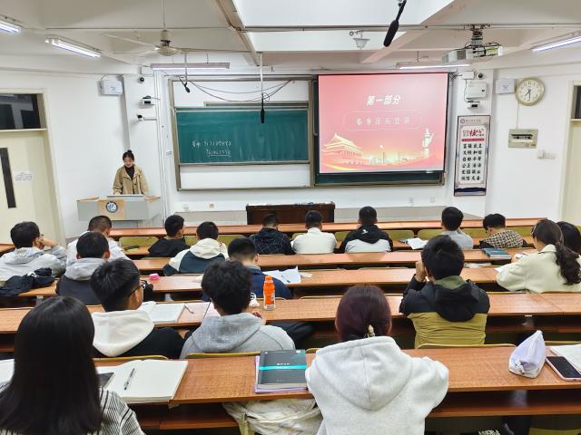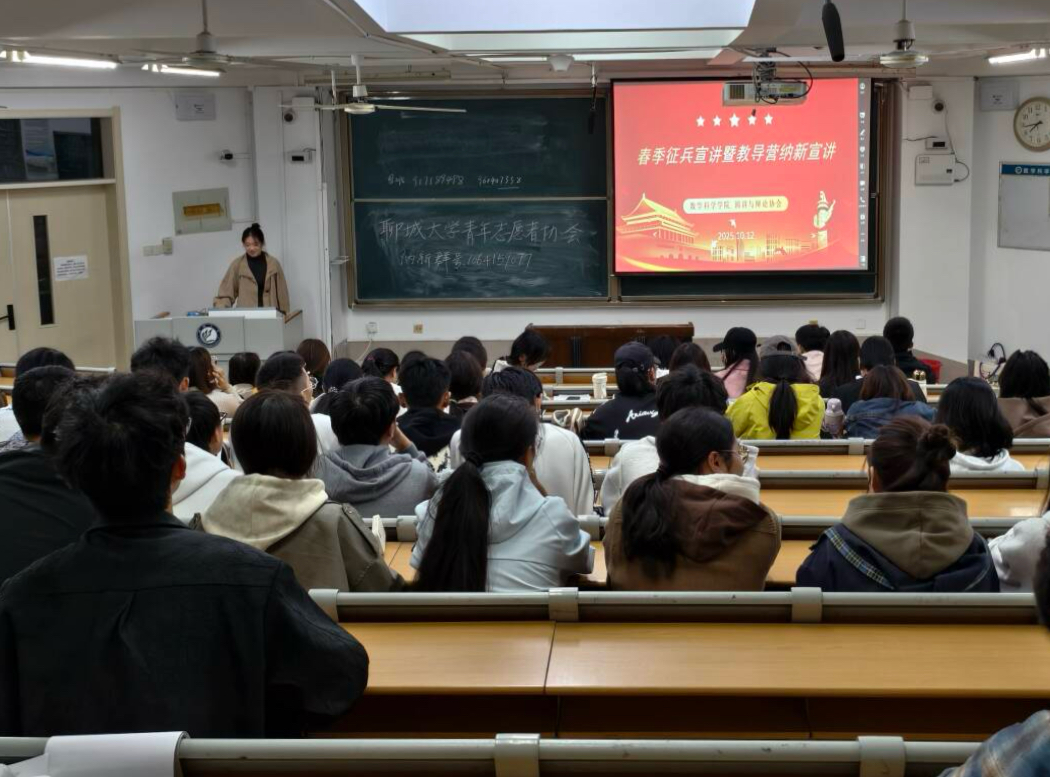 为向学生普及春季征兵政策,激发学生参军报国热情,增强学生家国情怀与责任担当,10月12日,数学科学学院于11号教学楼A104、A204、A207、A210教室开展“戎装赴征程,营中炼真金”春季征兵宣讲暨军训教导营纳新宣讲活动,本次活动由武鑫琳主持,2025级全体学生参加。