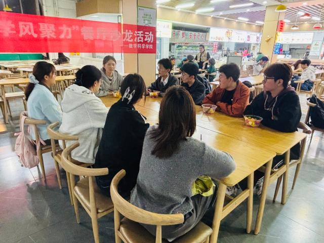 为加强班级学风建设,落实求真务实的育人理念,10月16日,数学科学学院于湖苑餐厅二楼开展“数韵润心,学风聚力”餐厅沙龙活动,此次活动由辅导员徐鑫主讲,2024级班长以及学习发展部和督察中心相关主席、助理、负责人参与。