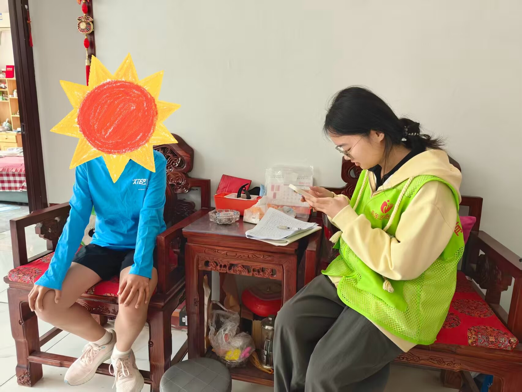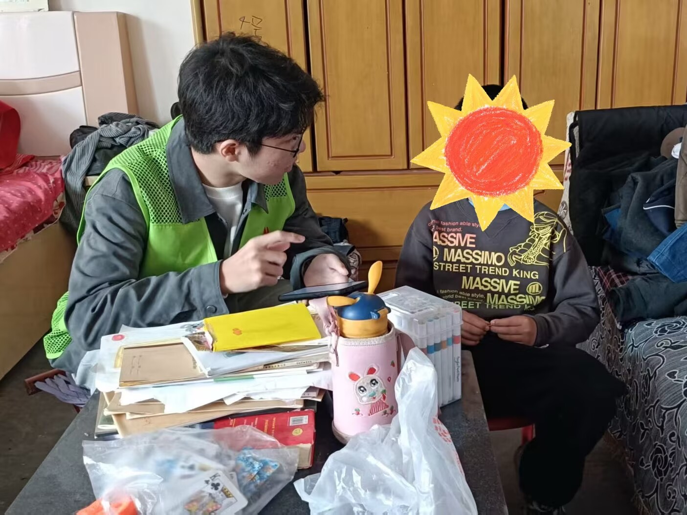 春风送暖,志愿同行。活动当天,志愿者每到一户,都会俯下身与孩子亲切交流,耐心倾听孩子们的心声,细致询问他们的学习进度、生活起居、兴趣爱好及心理状态,认真为孩子们完善成长档案和心理档案,为后续开展个性化、精准化的关爱帮扶工作留存第一手资料。志愿者的贴心陪伴与真诚关怀,化解了孩子们的腼腆与生疏,让孩子们在春日的暖阳中真切感受到来自社会的浓浓温情。