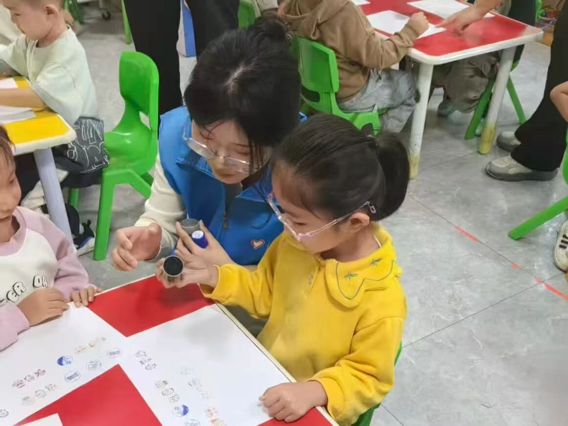 本次宣讲分为两大板块。一是“生活中的核辐射”板块,宣讲团成员系统地向小朋友们讲解了核辐射的类型以及生活中常见的电离辐射,他们将肉眼不可见的核辐射形象类比为“隐身的微观粒子”,清晰地阐释了天然辐射与人工辐射的分类标准。二是“核技术的应用”板块,宣讲团成员分别从工业、农业等方面讲述了核技术带给人类生活的影响,用通俗的语言将抽象的概念变得简单易懂。小朋友们认真聆听,积极提出问题,宣传团成员耐心解答,引导小朋友们主动了解科学、热爱科学。活动最后,宣讲团成员组织小朋友们进行集体盖章留念,一枚枚印着核技术应用场景的纪念章被小朋友们认真地盖在笔记本上,每一个图案都对应着宣讲中提到的知识点,本次集体盖章留念活动既是对本次科普内容的趣味回顾,又在小朋友们心中播下科学探索的种子。