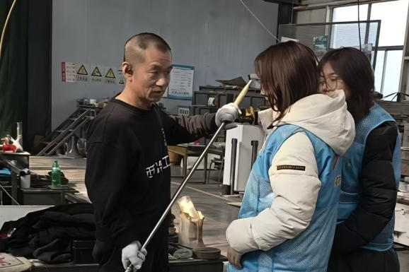 实践队首站抵达西冶工坊。在工坊内部,队员们实地观摩琉璃灯工、热塑、雕刻等制作全流程。非遗传承人现场演示琉璃烧制技艺,并向队员们介绍了特色工艺的繁复工序与传承现状。实践队成员认真聆听、细致记录,在近距离感受琉璃艺术独特魅力的同时,也深刻体会到非遗技艺背后的匠心坚守与文化底蕴。