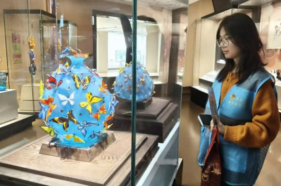 实践队来到中国陶瓷琉璃馆,在馆内专业人员的引导下,队员们认真参观各种琉璃艺术品,并系统学习了淄博琉璃从西周起源到当代发展的完整脉络,沉浸式感受传统工艺的匠心。