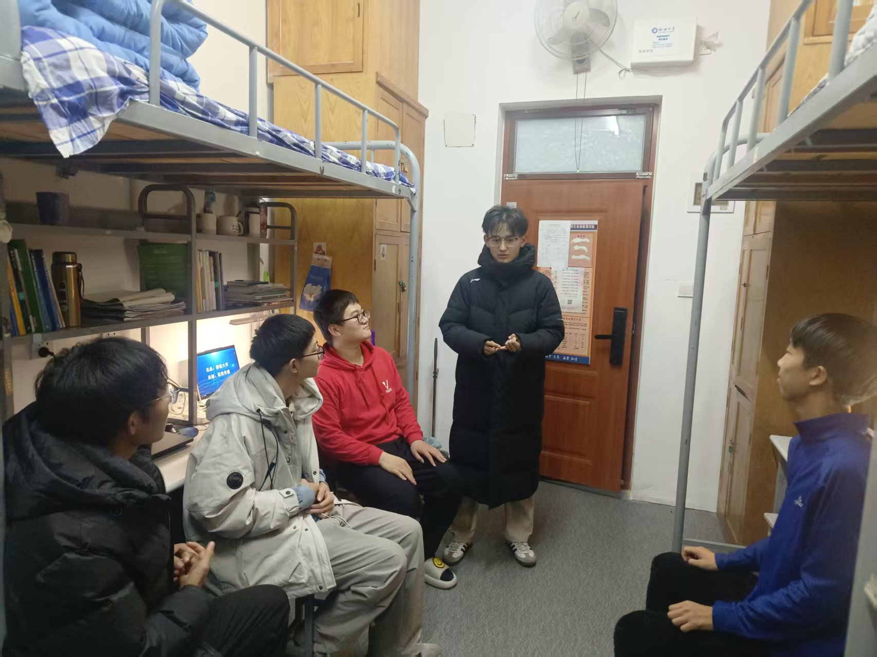 本次活动中,党员以朋辈身份走进大一、大二学生宿舍,既结合自身经历分享了专业课高效学习技巧与学科竞赛备赛的时间分配策略,也耐心讲解了期末备考及身心压力调节等方面的实用方法。同时,重点普及了宿舍用电安全、消防隐患排查等消防安全知识。