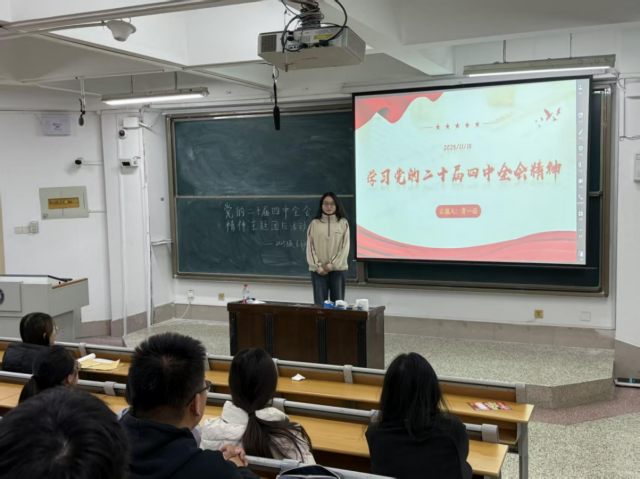 为进一步学习党的二十届四中全会精神,引导青年学子把个人成长融入国家发展大局,11月19日,数学科学学院2025级6、7班团支部于11号教学楼A210教室举办“学习贯彻党的二十届四中全会精神”主题团日活动。本次活动由团支部书记贾一诺、王茹箫主持,全体支部成员共同参与。