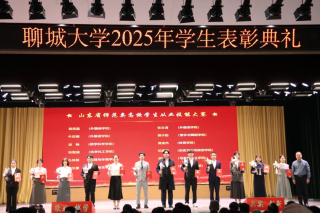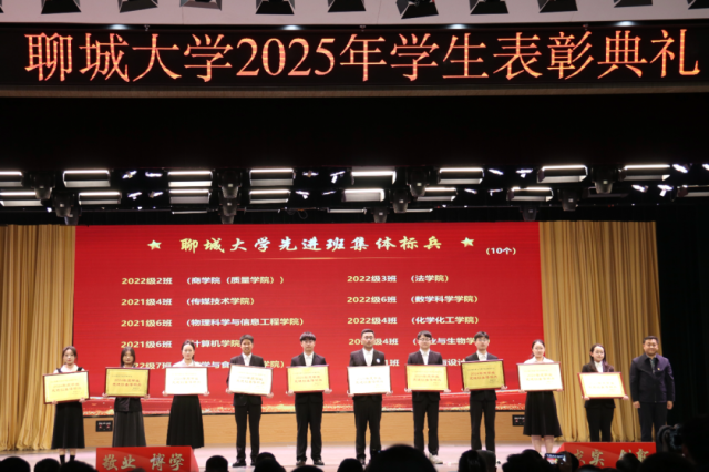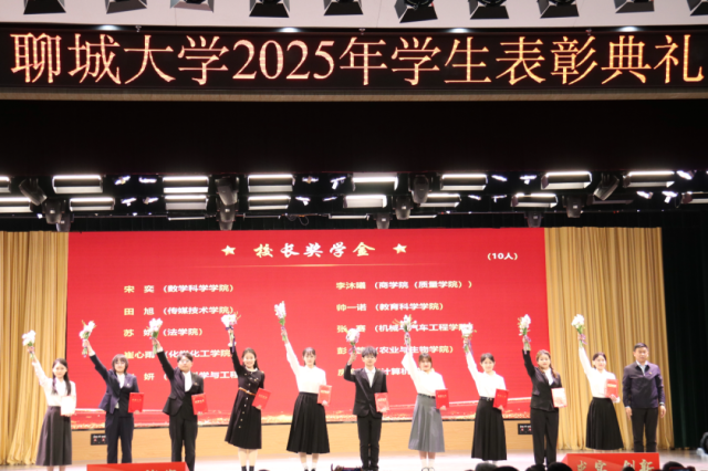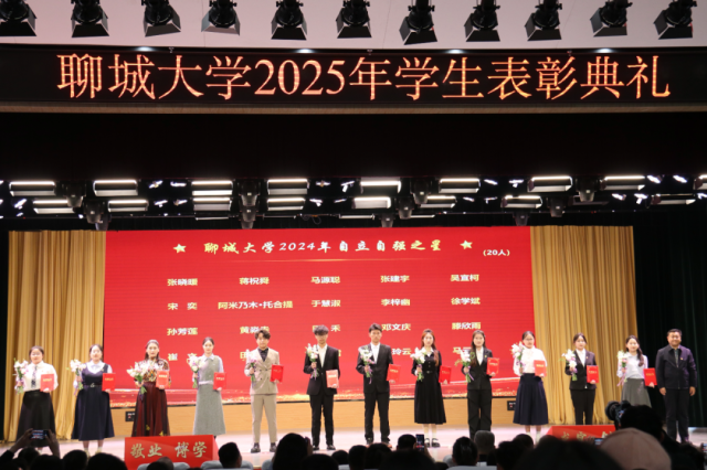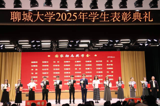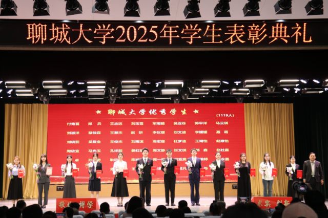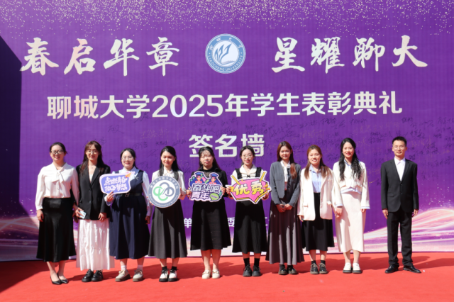 4月2日,“春启华章,星耀聊大”聊城大学2025年学生表彰典礼于西校区礼堂隆重举行,我院学子贾成昭、闫城源、吴亚菲、万雪玲、徐畅、马源聪、宋奕、杨婷文、马晗雪上台领奖。