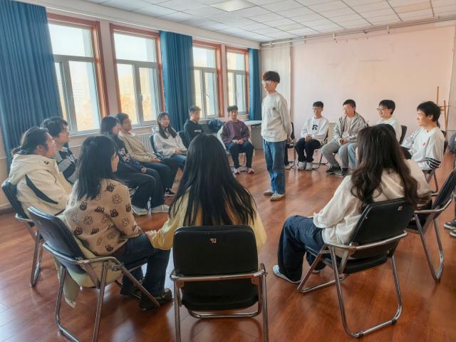 活动伊始,主持人向同学们介绍本次活动的核心目的与游戏规则,让同学们清晰理解参与要求,为活动的顺利进行做好充分准备。随后,进入游戏环节:“大风吹”游戏中,发令者喊出特征指令后,符合条件的同学迅速起身换位,让现场氛围瞬间活跃起来;“滚雪球”游戏中,同学们按顺时针依次介绍姓名、家乡和兴趣爱好,后续同学则负责复述前几位同学的信息,让彼此在倾听与复述中加深了解;“合力建塔”游戏中,同学们以小组形式通过肢体协作搭建“人体塔”,在一次次调整与配合中,一座座高且稳的“人体塔”相继成型,充分展现了团队的智慧与默契。游戏结束后,同学们积极分享本次活动的收获,进一步将游戏中的直观感受转化为具体的协作经验,让团队协作的内涵在交流中变得更加清晰。