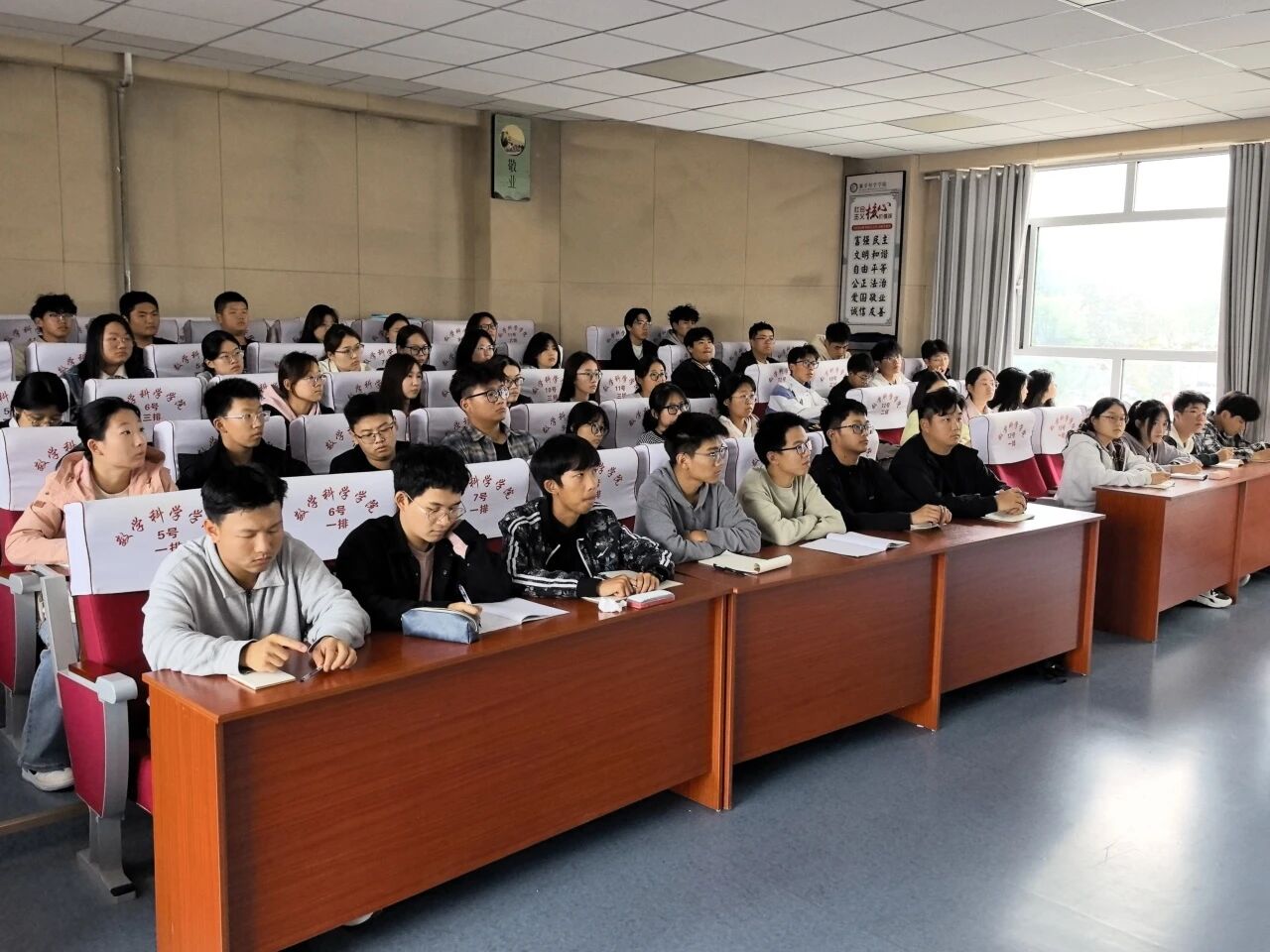 为帮助2025级新生班委明确职责,搭建学院与新生的沟通桥梁,提升班级管理效能,10月13日,数学科学学院于11号教学楼C201教室举办2025级新生班委见面会,本次见面会由辅导员牛玉帅主讲,辅导员范海燕、徐鑫及2025级全体班委参加。