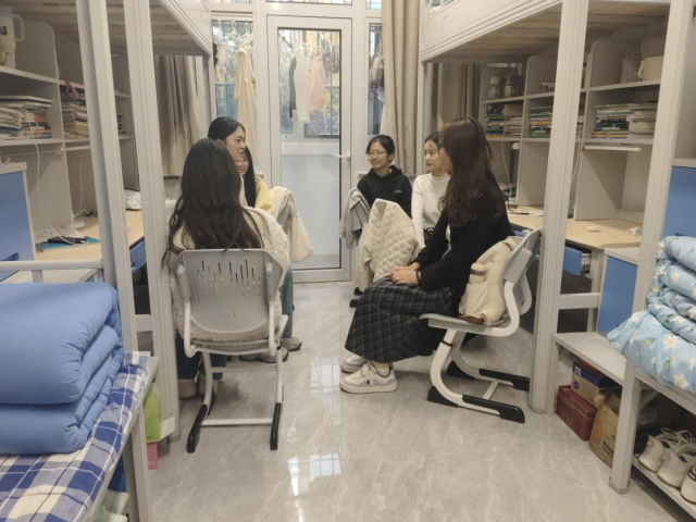 带着对女同学们生活细节的牵挂,尤其是对家庭经济困难学生的格外关注,学院老师深入女生宿舍,开展“面对面、心贴心”的走访交流活动。走访中,老师们与同学们围坐一堂,拉家常、谈学业、话未来,不仅细致询问大家的住宿环境、日常作息与人际关系,还聚焦专业学习、考研就业等核心需求,耐心倾听同学们的困惑与诉求并给予针对性指导。针对家庭经济困难的学生,老师们格外留意其生活保障与实际难处,主动了解需求、送上关怀,用暖心的交流打破师生间的距离感,让关爱与帮扶精准触达每一位需要的同学,在潜移默化中传递学院的温暖与支持。