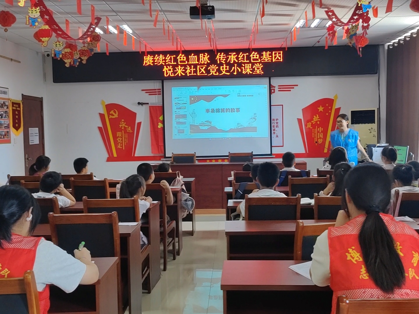 实践队走进社区,为小朋友们普及红色知识。队员用生动的语言讲述了小萝卜头、王二小等少年英雄的故事,结合绘本、老照片等道具,将战火年代先烈们的勇敢与担当娓娓道来。队员还跟随社区负责人一同看望军人家属,了解生活情况和需求落实,并发放社区准备的礼品。