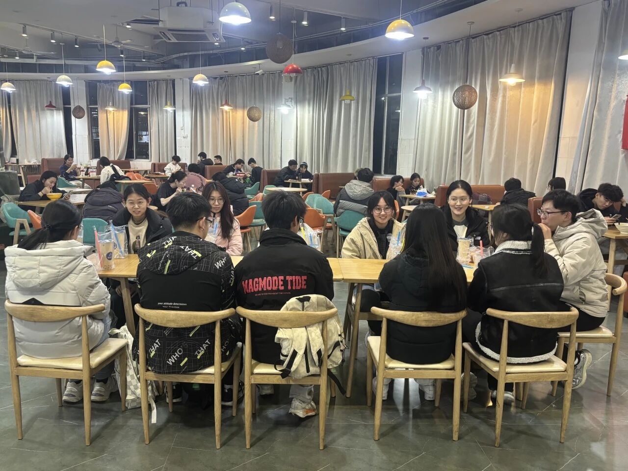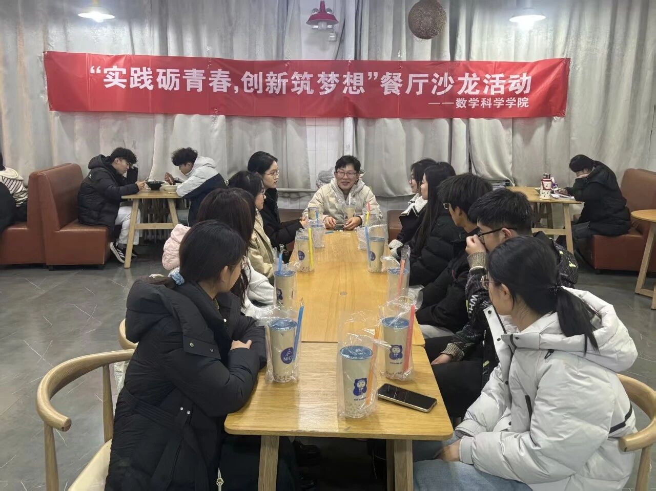 为帮助学生了解创新创业竞赛与学科竞赛相关知识,激励学生积极参与各类竞赛,在实践中锻炼自身能力,11月27日,数学科学学院于湖苑餐厅举办“实践砺青春,创新筑梦想”餐厅沙龙活动,此次活动由辅导员赵文豪主讲,2025级部分学生参加。
