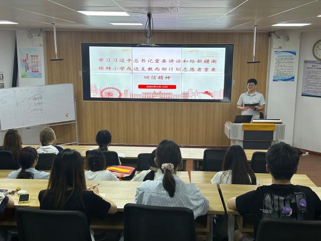 为引导学生领会习近平总书记对广大青年的殷切期望,激励学生坚定理想信念,担当时代使命,5月13日,数学科学学院组织主要学生干部于11号教学楼A310教室学习习近平总书记给谢依特小学戍边支教西部计划志愿者服务队队员重要回信精神。