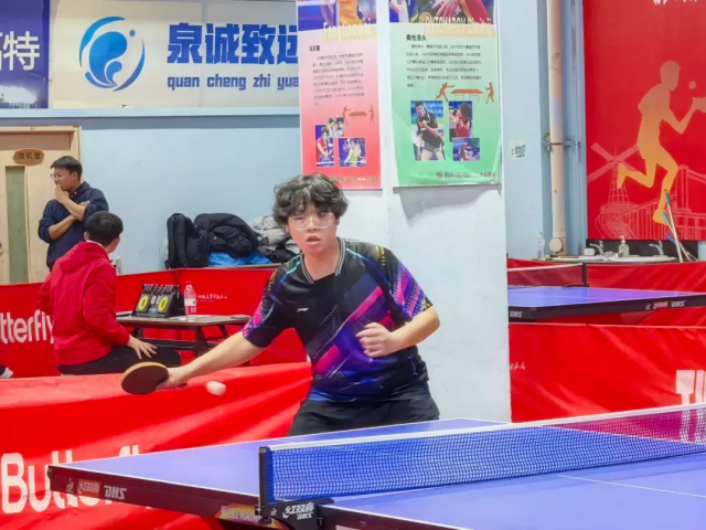 乒乓球赛场上,选手们眉宇间透着沉稳与坚定,紧盯小球轨迹。发球时,手腕轻旋发力,乒乓球划出凌厉弧线擦网而过;接球时,跨步急冲,球拍稳稳迎击,清脆的击球声此起彼伏。相持阶段,选手们灵活移动,时而弓步探身轻挑,时而侧身转体猛攻,眼中闪烁着拼搏与坚定的光芒,尽显数科学子的竞技风貌。