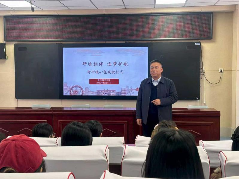 为帮助考研学子缓解备考压力,坚定迎考信心,12月11日,数学科学学院于11号教学楼A201教室开展“研途相伴,逐梦护航”考研暖心包发放仪式。本次活动由学院团委书记岳琳琳主持,学院党委书记刘德芳、副院长赵军圣出席本次活动。