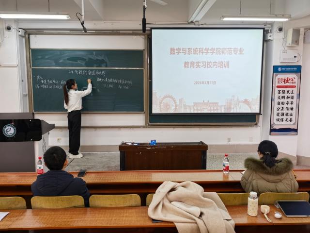 培训共分为6个小组同步进行,每组由一名指导教师全程跟进、逐一点评,力求还原真实课堂情境,引导学生在实战中发现问题、优化设计、提升教学组织能力。实习学生围绕课程标准,精心准备教学内容,既注重数学逻辑的严谨呈现,也融入了富有互动性的教学环节,充分展现了学院师范生扎实的专业基础和良好的教学风貌。