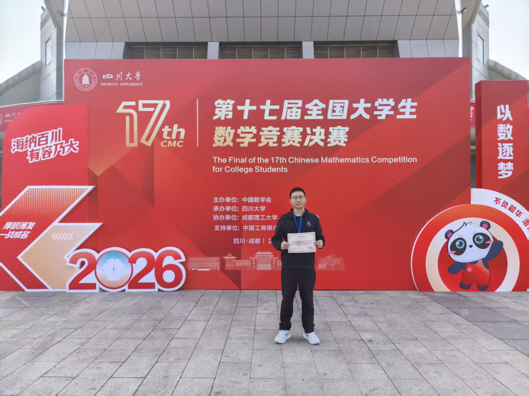 4月18日至19日,第十七届全国大学生数学竞赛决赛在四川大学举行。数学与系统科学学院教师樊树芳全程指导,数科学子张永浩凭借扎实过硬的专业能力,荣获数学类高年级组国家级二等奖,不仅为学校争得荣誉,更取得了我校在该项赛事数学类组别的历史性突破。