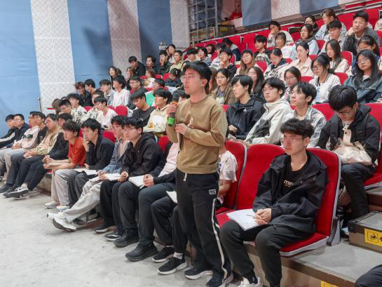 问答环节,刘利刚与现场同学亲切互动,耐心回应大家关于学科前沿、学业规划与科研入门的疑问,为同学们指点迷津。最后,刘利刚鼓励同学们将个人学术追求融入国家发展大局,以扎实学识践行新时代青年使命,成长为德才兼备、堪当大任的数学领域后备人才。